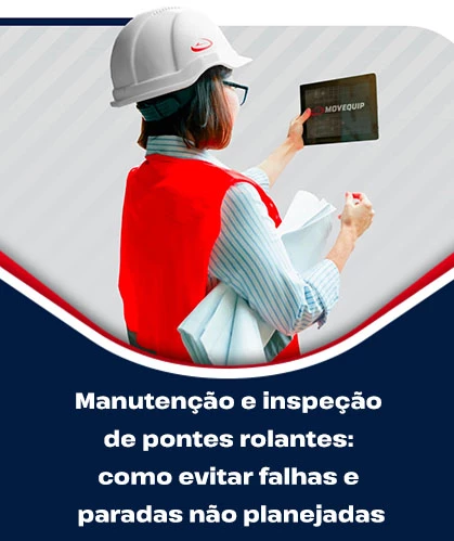 Por isso a Movequip, especialista no desenvolvimento de sistemas de movimentação de cargas, incluindo pontes rolantes, traz um portfólio completo de serviços de manutenção para e inspeção, que elimina surpresas e maximiza a disponibilidade dos seus equipamentos.